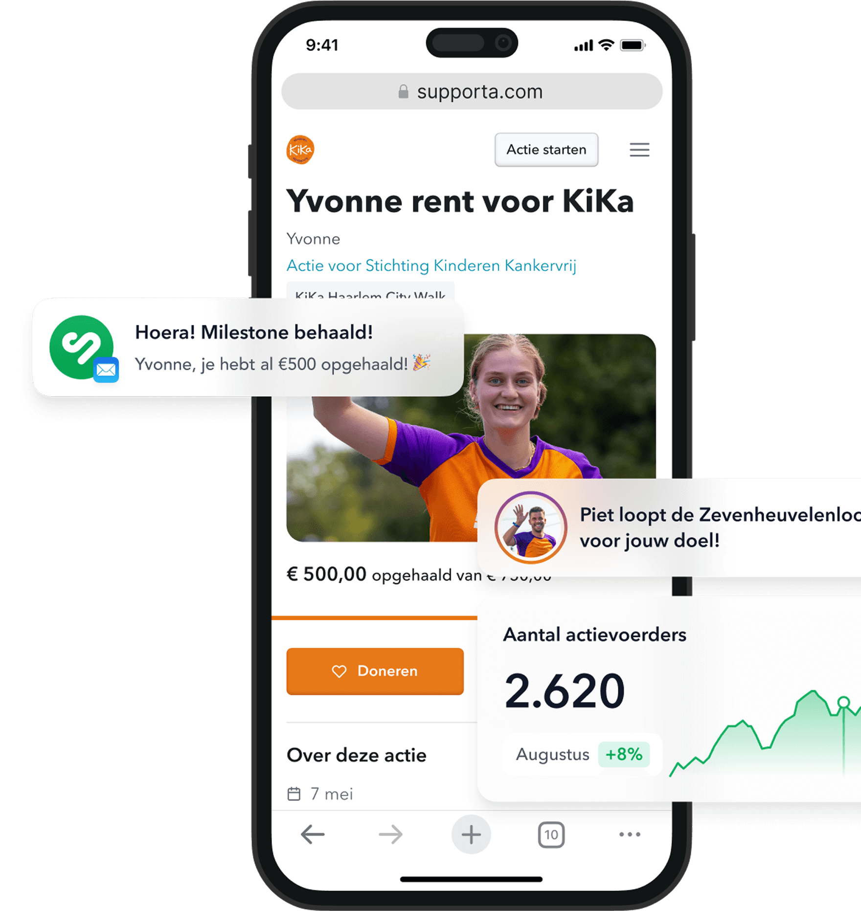 Supporta is een krachtig platform waarmee je als goed doel eenvoudig deelnemers sponsorgeld laat inzamelen. Het maakt fondsenwerving overzichtelijk, schaalbaar én effectief.